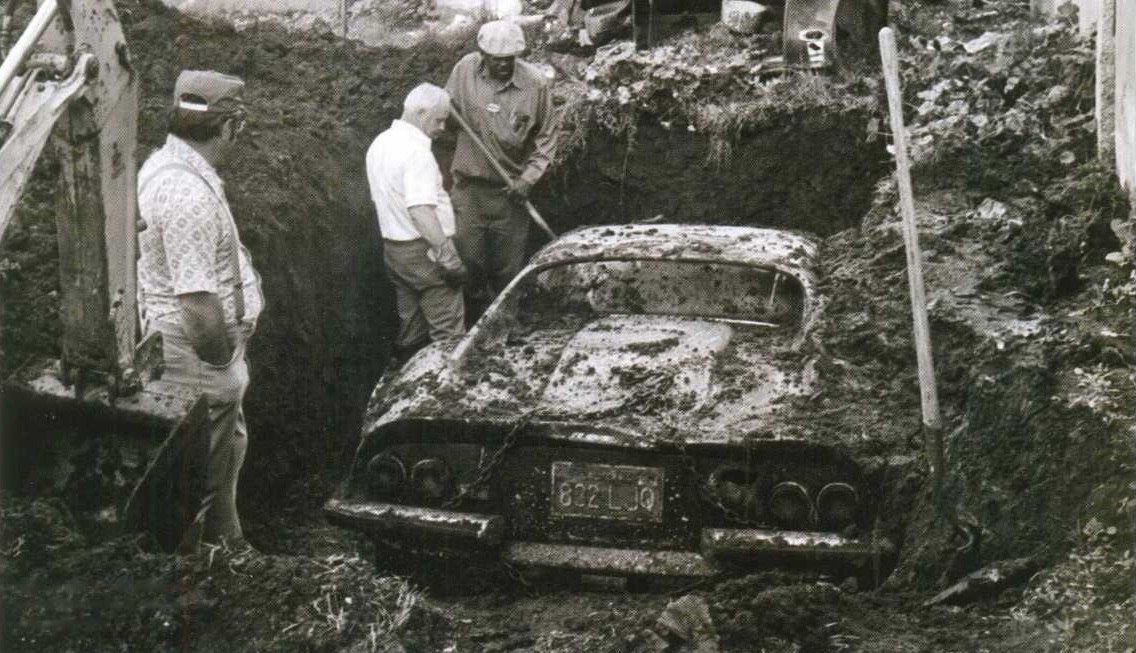 История эта случилась в Лос-Анджелесе в 1978 году, когда, по сообщению газет, дети игравшие на заднем дворе одного из домов нашли кусок пленки торчащий из под земли. Когда они решили его откопать, то обнаружили, что под пленкой, всего в нескольких сантиметрах под землей, находится что-то большое, железное и очень похожее на автомобиль. Дети сообщили о находке родителям, а те вызвали полицию. Прибывшие детективы раскидали землю и увидели лобовое стекло автомобиля. Посветив внутрь они с облегчением выдохнули — тел внутри автомобиля не было. Через несколько дней они вернулись на место с бригадой рабочих и принялись откапывать находку. Дальнейшая раскопка показала, что в автомобиле нет ни тел, ни наркотиков, ни оружия. Но это еще больше запутало ситуацию. Ведь закопанная в землю машина была не каким-то ржавым Шевроле со свалки, а почти новеньким Ferrari Dino 246 GTS. Кому могло прийти в голову закапывать дорогой спортивный автомобиль. И, главное, зачем?