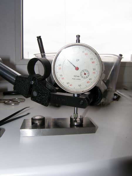 это одна шайба первый замер на не работающей поверхности там 0, дальше сдвиг по трем точкам.