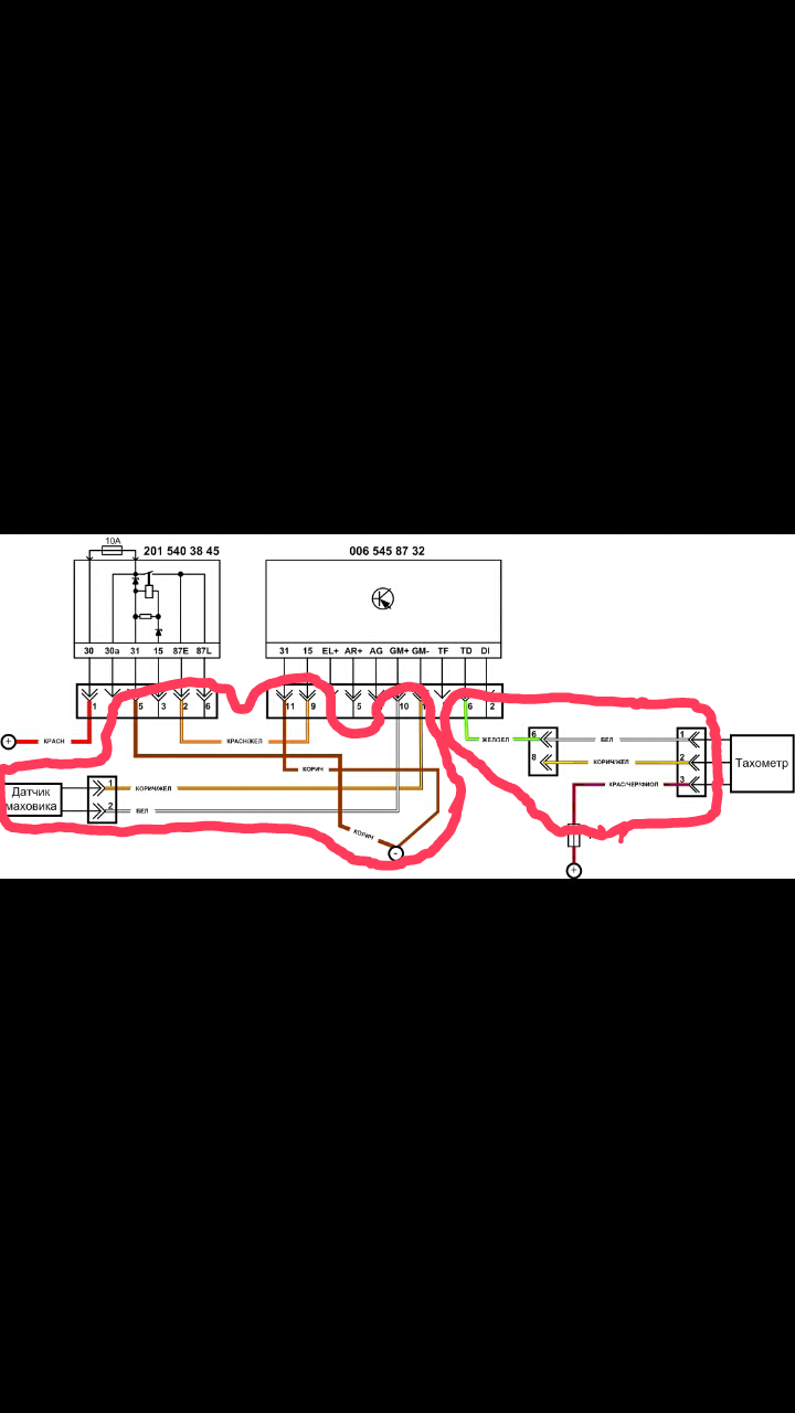 Так, получается на реле 15 плюс, 31 масса, TD это на тахометр, дпкв лепим один провод на реле на контакт GM+, а второй-то куда? На этот 87К?