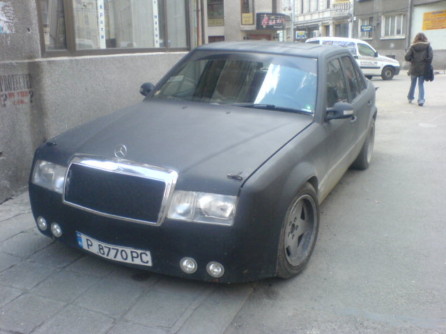 По-моему такая машина всегда должна быть чистой. Любая грязь на автомобиле, как на 124 синем, так и на страном 124 черном - сразу всю ее пачкает, ощущение, как-будто машина вся в грязи. Я даже не знаю, нужна матовая краска, или не нужна
