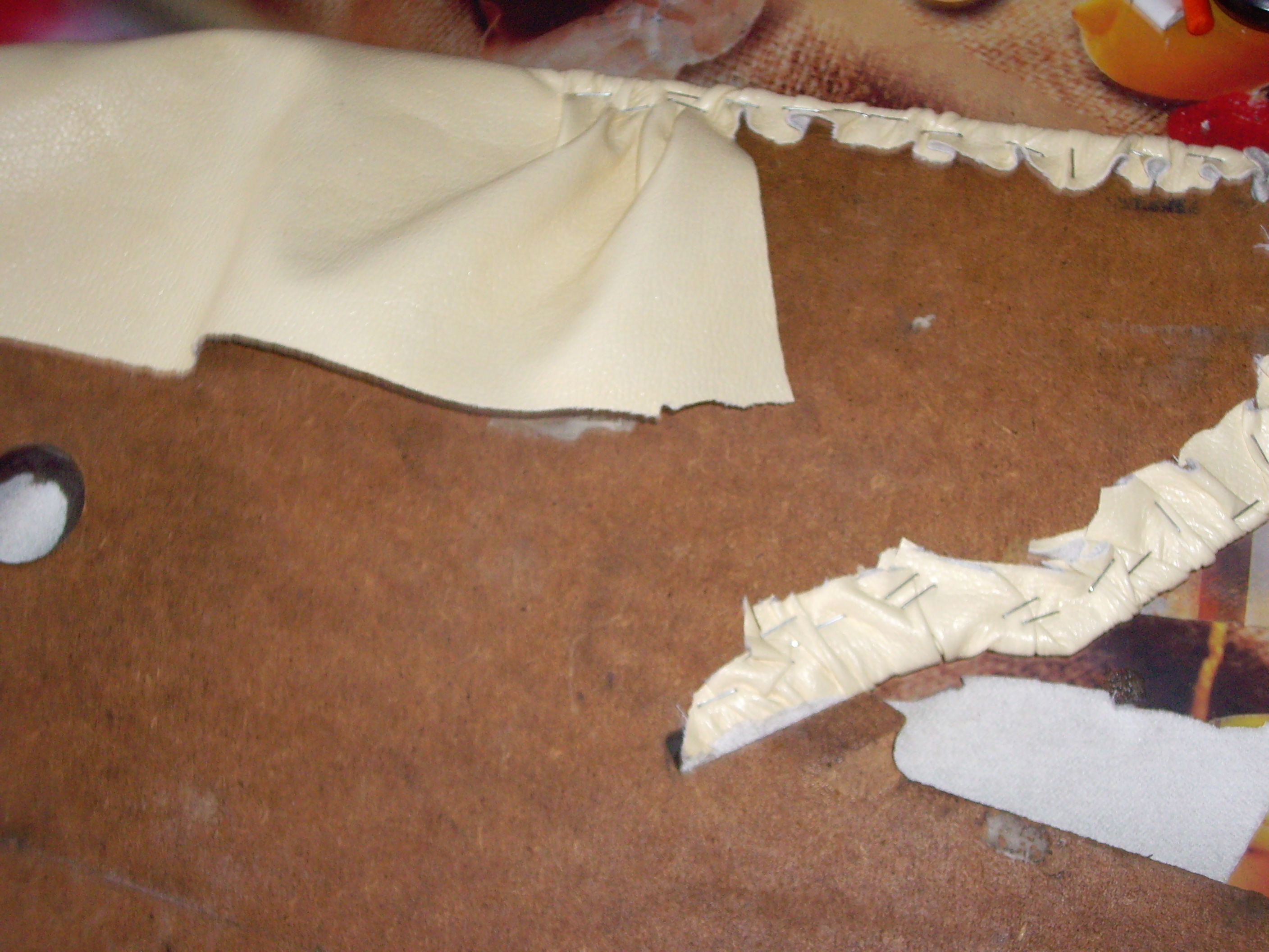 4. Полагаю, что для придания "пухлости" использовался поролон. Снизу он должен был подшиваться какой-либо тканью. Какова технология?