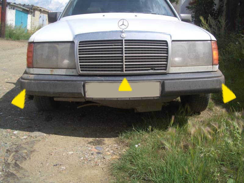 снимаем бампер что бы снять накладку чёрную которая по центру идёт нужно с обоих краёв бампера открутить по два саморезя хотя их три должно быть но у меня два))