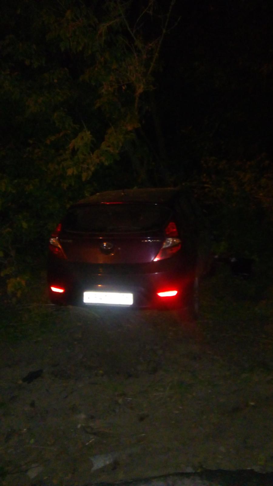 "Соларис", полный очень нетрезвых баб и мужиков видимо летел с верху на приличной скорости, раскачался на повороте и мордой ушёл в деревья (слава богу не в наш забор, а на противоположную обочину). Одна попа из деревьев торчит. Видимо на пенёк насадился, потому что "9-кой" (видимо приехала по звонку на выручку) два ра за пытались выдернуть - ни на сантиметр, только трос оба раза порвали.